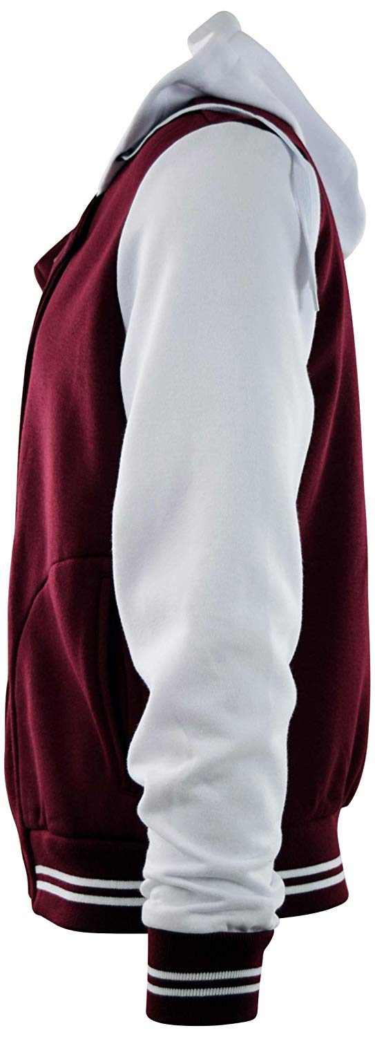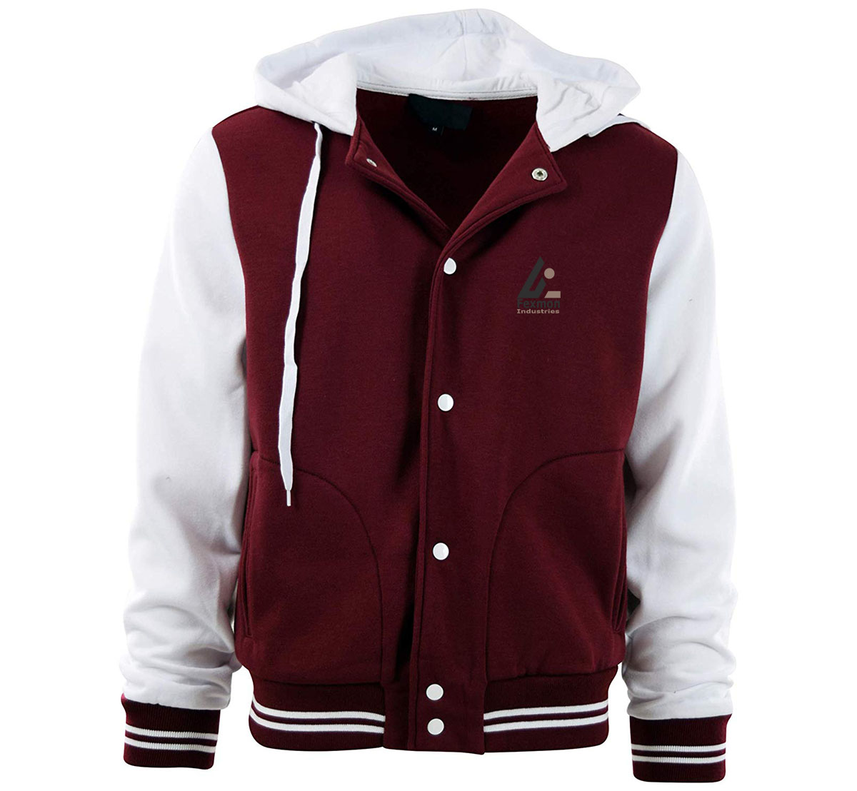 Varsity Jacket made from 350gsm Cotton fleece (80% Cotton 20% Polyester) with fine quality polyester quilted lining in side of Jacket, Rib on collar, Buttons on front of Jacket, cuff & bottom of Jacket, Internal and External pocket.