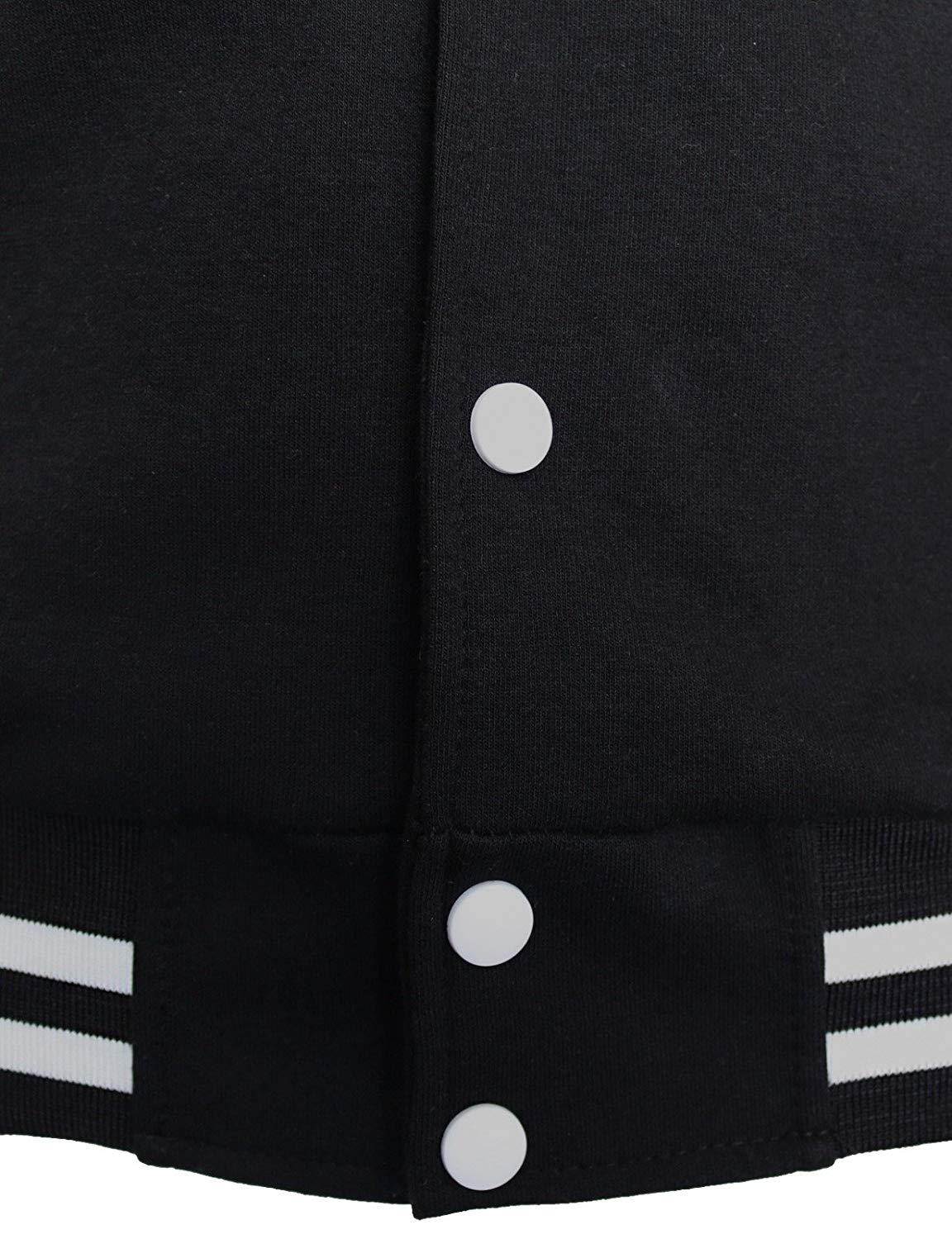 Varsity Jacket made from 350gsm Cotton fleece (80% Cotton 20% Polyester) with fine quality polyester quilted lining in side of Jacket, Rib on collar, Buttons on front of Jacket, cuff & bottom of Jacket, Internal and External pocket.