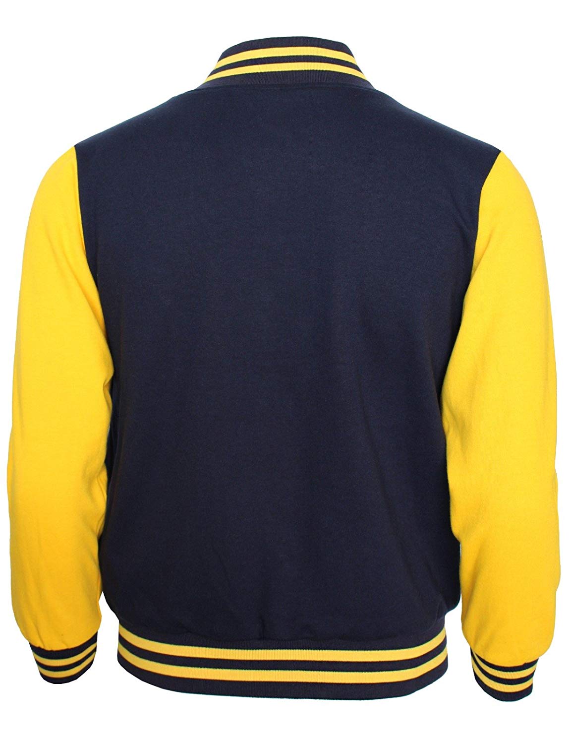 Varsity Jacket made from 350gsm Cotton fleece (80% Cotton 20% Polyester) with fine quality polyester quilted lining in side of Jacket, Rib on collar, Buttons on front of Jacket, cuff & bottom of Jacket, Internal and External pocket.