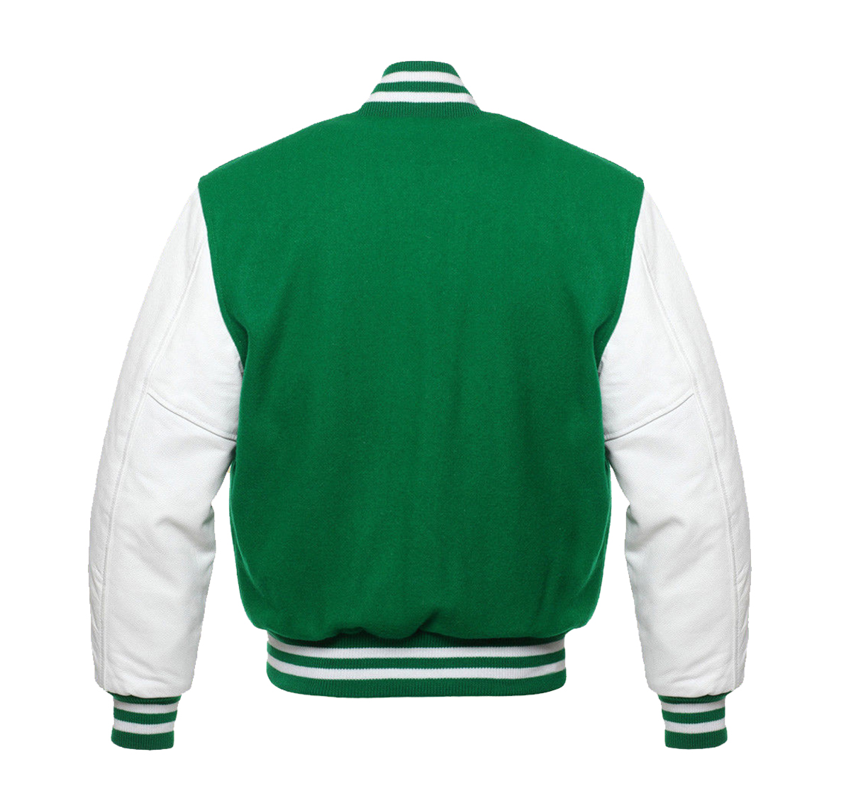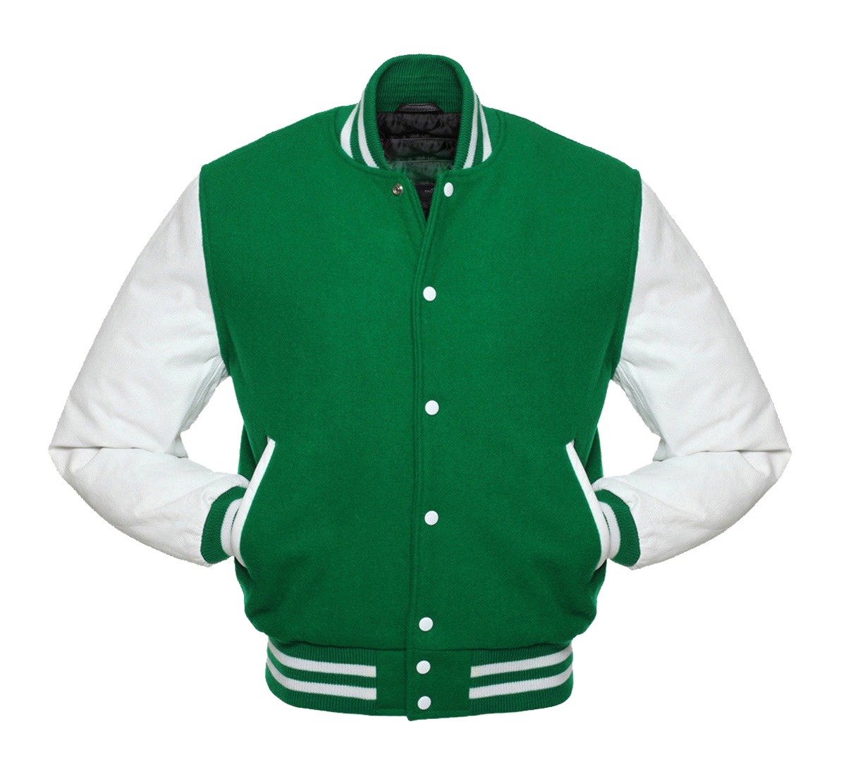 Varsity Jacket made from Molten wool body & Genuine Leather Sleeves (Cowhide, Sheep Skin & Buffalo) with fine quality polyester quilted lining in side of Jacket, Rib on collar, Buttons on front of Jacket, cuff & bottom of Jacket, Internal and External pocket.