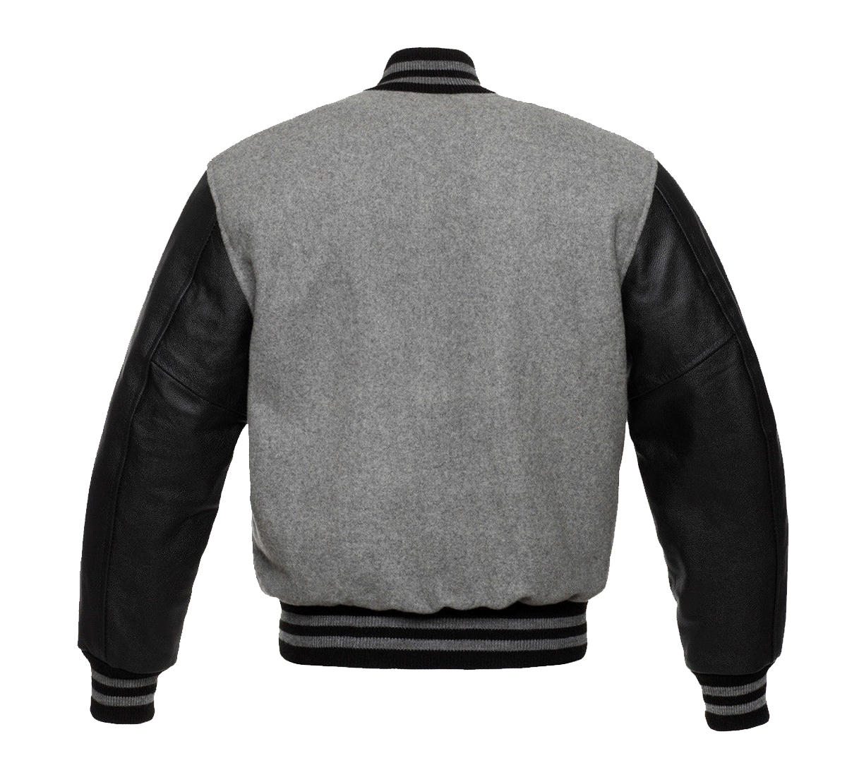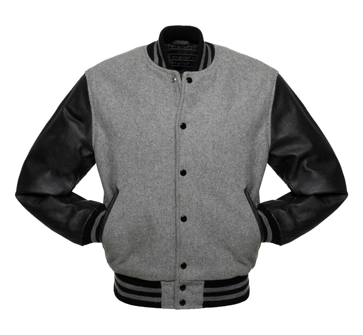 Varsity Jacket made from Molten wool body & Genuine Leather Sleeves (Cowhide, Sheep Skin & Buffalo) with fine quality polyester quilted lining in side of Jacket, Rib on collar, Buttons on front of Jacket, cuff & bottom of Jacket, Internal and External pocket.