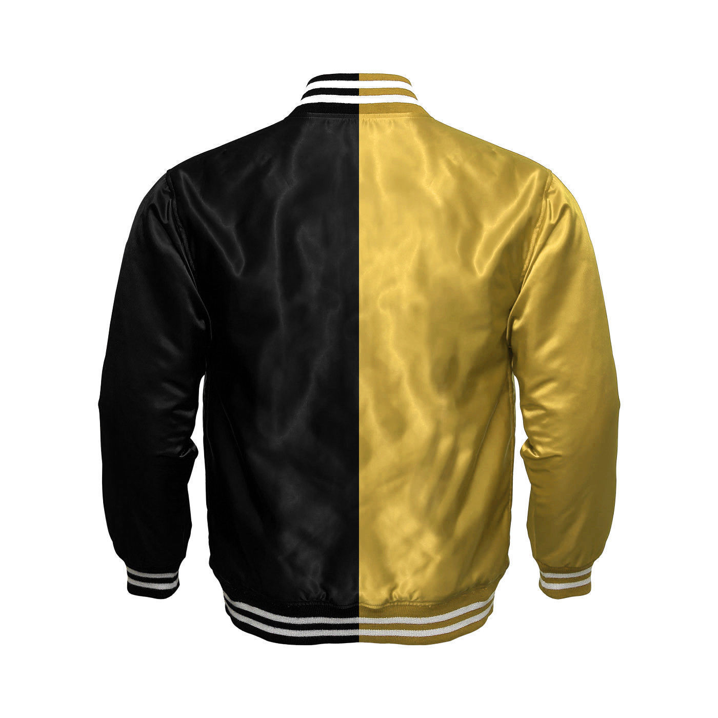 Varsity Jacket made from  Premium quality Satin body with fine quality polyester quilted lining in side of Jacket, Rib on collar, Buttons on front of Jacket, cuff & bottom of Jacket, Internal and External pocket.